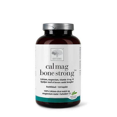 Cal mag bone strong er calcium-magnesium kapsler med vitamin D og K. Kapslerne indeholder også kombinationsekstrakt af urter inklusiv ekstrakt af lang og sort peber samt fransk maritim fyrrebark. Calcium, magnesium, vitamin D og -K bidrager til at vedlige