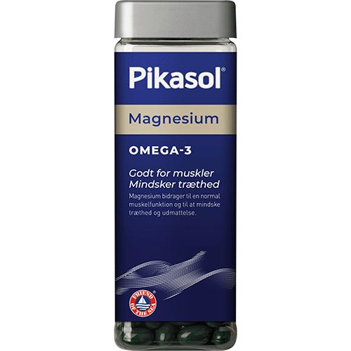 Kapsler med fiskeolie, magnesium, vitamin C og vitamin D.