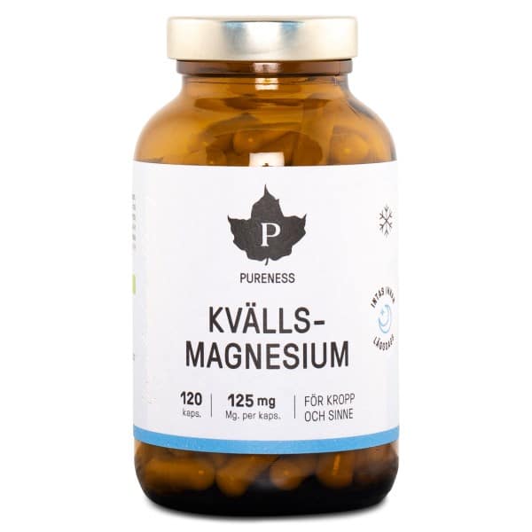 Optimér din søvn med Pureness Aften Magnesium, et kosttilskud udviklet til at bidrage til bedre søvn. Tilskuddet indeholder magnesiumbisglycinat, en form for magnesium der er meget mavevenlig samt med fordel tages om aftenen, da den kan have en beroligende effekt på kroppen. Pureness Aften Magnesium indeholder også kamilleblomst, en urt som længe er blevet anvendt i afslappende øjemed, samt aminosyren L-theanin. L-theanin findes naturligt i grøn te og menes at have en effekt på neurotransmitterne dopamin og serotonin. Kosttilskuddet kommer i kapsel form.