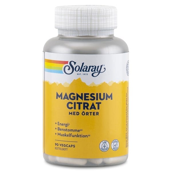 Solaray Magnesium Citrate indeholder kapsler med magnesiumcitrat i en base af urter for at give synergieffekt og lette optagelsen. Magnesium er en af de vigtigste mineraler i kroppen, hvor det har mange forskellige funktioner. Blandt andet bidrager magnesium til cellernes energiproduktion og hjælper med at reducere træthed og udmattelse. Det er også nødvendigt for nervesystemet og bidrager til at opretholde normal knoglestruktur og muskelfunktion. Solaray Magnesium Citrate er kapsler med et fint pulver for en god og skånsom optagelse.